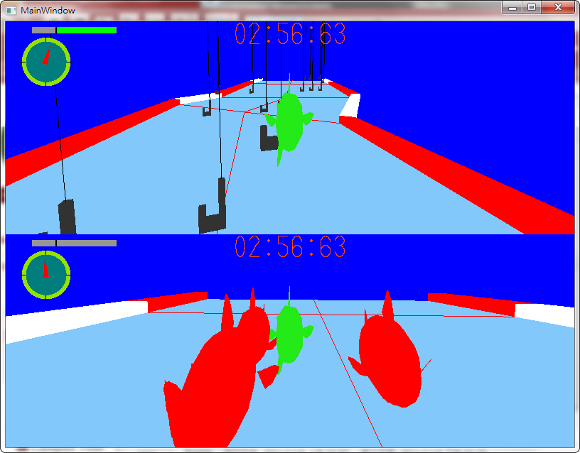 Developed a fish racing game in a 7 members’ team. Compete with AI players (1P) or/and your friends (2P). Used C++ and OpenGL. [ website] [ presentation]