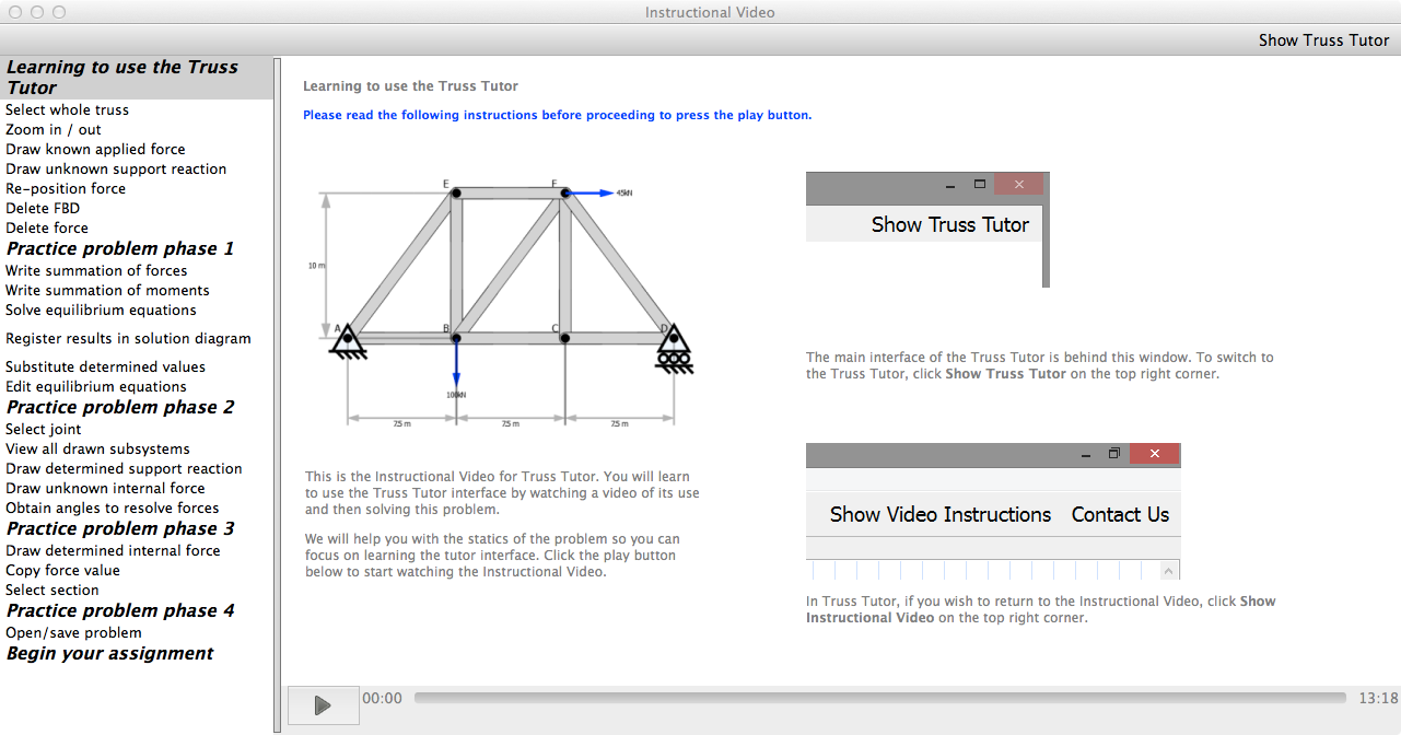 Developed a Truss Tutor software, which helps students to learn statics of truss with error checker and hints in the software. Collaborated with another member. Used C++ and QT. [ extended article]