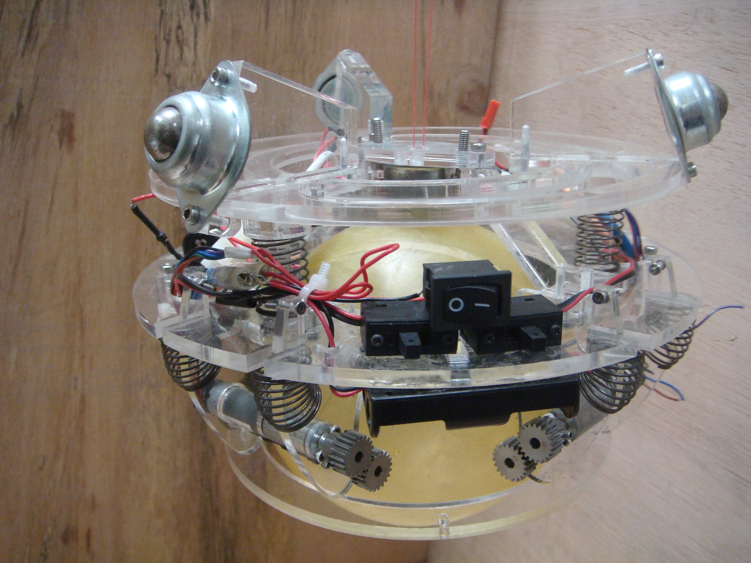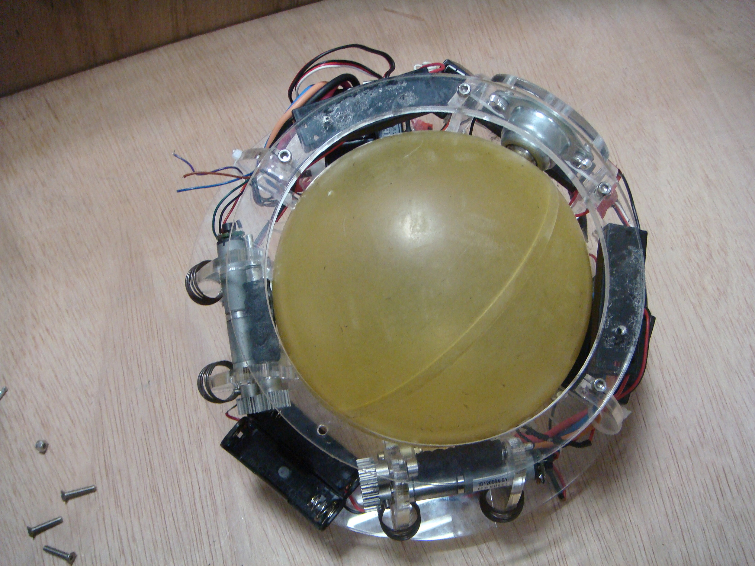 Built a ball-shape robot driven by 2 perpendicular motors in a 4 members’ team. Used acrylic and plastic balls. [ document]